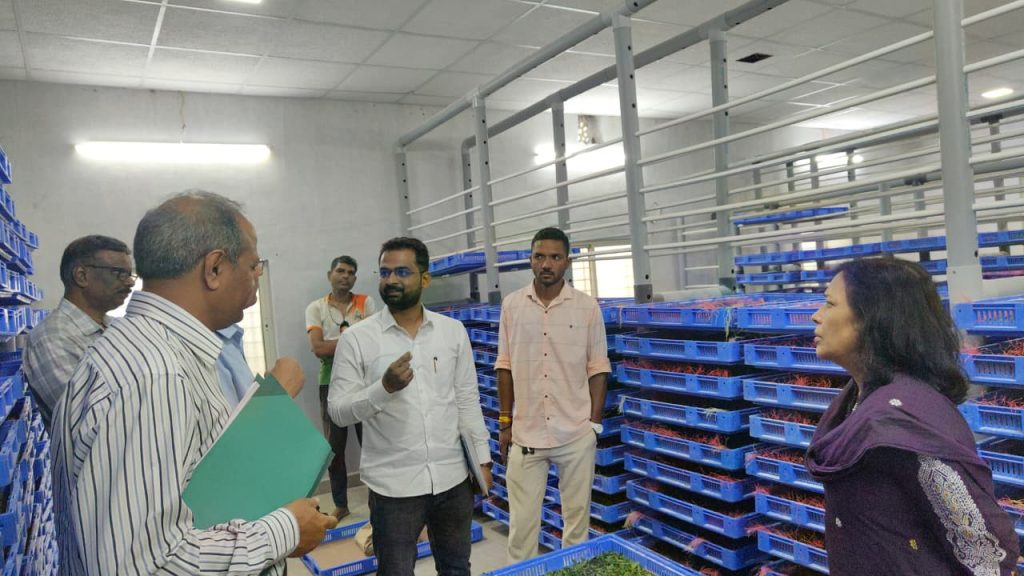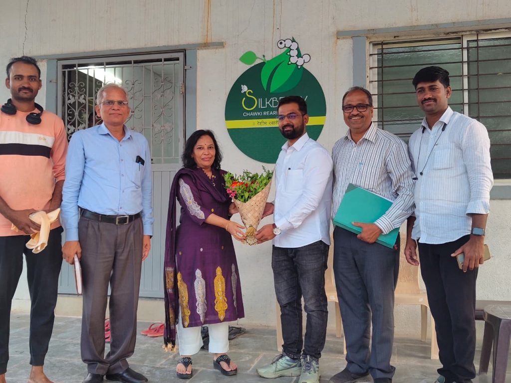 Principal Secretary (Textiles) observing the functioning and operations of the Silkberry Chawki Centre, located in Waki, Taluka – Khed, District – Pune.